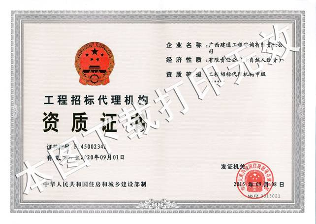 在集團、公司領導的關心、支持以及品牌公司資質申報全體人員的共同努力下,我集團旗下子公司廣西建通工程咨詢有限責任公司于2015年9月8日成功取得由中華人民共和國住房和城鄉(xiāng)建設部頒發(fā)的工程招標代理機構甲級資質證書延續(xù)。廣西建通工程咨詢有限責任公司擁有一支技術能力強、專業(yè)程度高的招標代理人才隊伍,致力于為業(yè)主提供優(yōu)質的招標代理服務,公司的招標業(yè)務涉及房建、市政、橋梁、水利、公路等多個領域,囊括土木工程、建筑工程、線路管道和設備安裝工程及裝飾裝修工程的勘察、設計、施工、監(jiān)理以及與工程建設有關的重要設備、材料采購招標的代理業(yè)務,此次工程招標代理甲級資質延續(xù)的取得為公司招標代理業(yè)務的拓展提供了更廣闊的空間,為公司從區(qū)域公司轉型為全國性公司奠定了堅實的基礎。公司將珍惜榮譽,為實現集團全國品牌發(fā)展戰(zhàn)略保駕護航!