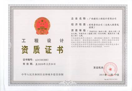 2015年12月11日,從廣西住房和城鄉(xiāng)建設(shè)廳官網(wǎng)傳來喜訊,我集團(tuán)旗下子公司廣西建信工程設(shè)計(jì)有限公司順利通過了廣西住建廳資質(zhì)審查,成功增項(xiàng)市政行業(yè)(給水工程、排水工程)專業(yè)乙級(jí)資質(zhì)。這標(biāo)志著公司的經(jīng)營(yíng)發(fā)展邁出了關(guān)鍵性的一步,在設(shè)計(jì)領(lǐng)域取得了突破性的進(jìn)展,拓伸了公司的設(shè)計(jì)業(yè)務(wù)空間,為整個(gè)公司的持續(xù)快速發(fā)展奠定了良好的基礎(chǔ)。