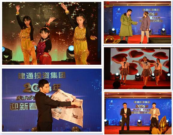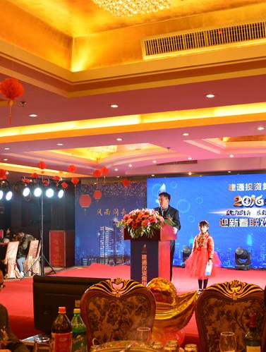 羊獻(xiàn)銀毫?xí)輬?bào),猴揮金捧迎新春。告別充滿(mǎn)挑戰(zhàn)、奮發(fā)有為的2015年,迎來(lái)了充滿(mǎn)希望、奮發(fā)進(jìn)取的2016年,在這喜慶的時(shí)刻我們相聚于此,分享一年辛勤勞動(dòng)的成果。2016年2月3日建通投資集團(tuán)“風(fēng)雨同舟,感謝有你”迎新春聯(lián)歡晚會(huì)在百色市川惠大酒店隆重舉行,集團(tuán)董事長(zhǎng)鄧安杰、集團(tuán)常務(wù)副董事長(zhǎng)羅 程、集團(tuán)副董事長(zhǎng)黃樹(shù)威、集團(tuán)全體董事、董事家屬,集團(tuán)南寧總部、百色總部全體員工,直屬分公司以及直營(yíng)分公司全體員工、特邀嘉賓共500余人到場(chǎng)參與,大家歡聚一堂,共享集團(tuán)的成長(zhǎng)與歡樂(lè)。現(xiàn)場(chǎng)張燈結(jié)彩、笑語(yǔ)喧嘩、歡喜熱鬧、和諧融洽,晚會(huì)在一片歡樂(lè)祥和的氣氛中取得了圓滿(mǎn)成功。