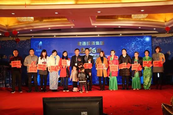 數(shù)易春秋,風(fēng)華正茂;幾載耕耘,碩果累累。建通投資集團(tuán)風(fēng)雨兼程十二載,我們激情滿(mǎn)懷,斗志昂揚(yáng);我們勇于開(kāi)拓,做專(zhuān)做強(qiáng);我們默默耕耘,艱苦奮斗;我們團(tuán)結(jié)協(xié)作,托起建通這輪火紅的朝陽(yáng)。每一段成功的經(jīng)驗(yàn)都使集團(tuán)的創(chuàng)業(yè)理念更加堅(jiān)定,我們相信永不止息的追求可以換來(lái)成功,這是一條平凡而又不平凡的路,創(chuàng)新、發(fā)展、一往直前、生生不息。集團(tuán)之樹(shù)常青,離不開(kāi)集團(tuán)員工的辛勤澆灌。晚宴上,集團(tuán)鄧安杰董事長(zhǎng)在致辭中對(duì)建通全體同仁們的多年辛勤付出表示衷心地感謝,他指出2015年是集團(tuán)睿智成長(zhǎng)的一年,也是充滿(mǎn)了艱辛與挑戰(zhàn)的一年,集團(tuán)董事會(huì)審時(shí)度勢(shì)及時(shí)適度調(diào)整集團(tuán)戰(zhàn)略和管理模式,在激烈的市場(chǎng)競(jìng)爭(zhēng)中及時(shí)適應(yīng)了經(jīng)濟(jì)發(fā)展的新常態(tài),呈現(xiàn)出逆勢(shì)而上的發(fā)展態(tài)勢(shì),在做大做強(qiáng)傳統(tǒng)主業(yè)的前提下,集團(tuán)董事會(huì)創(chuàng)造性的進(jìn)行了國(guó)內(nèi)資本市場(chǎng)戰(zhàn)略發(fā)展布局,在人才培養(yǎng)、資質(zhì)管理、集團(tuán)文化建設(shè)、市場(chǎng)拓展、品牌加盟,房地產(chǎn)投資開(kāi)發(fā)等各方面取得了令人欣慰的成績(jī)。面對(duì)即將到來(lái)的2016年,集團(tuán)鄧安杰董事長(zhǎng)表示,建通投資集團(tuán)將以更加自信和從容的態(tài)度,積極面對(duì)未來(lái)激烈的市場(chǎng)競(jìng)爭(zhēng),實(shí)現(xiàn)多元化經(jīng)營(yíng),打造一個(gè)“有生命,有價(jià)值”的集團(tuán)品牌,以“建通是我家,發(fā)展為大家”的集團(tuán)核心價(jià)值觀(guān)續(xù)寫(xiě)建通投資集團(tuán)的輝煌。最后鄧安杰董事長(zhǎng)向全體建通同仁們表達(dá)了新春的問(wèn)候,祝愿大家新春快樂(lè),闔家幸福美滿(mǎn),在新一年的工作中勇敢的迎接挑戰(zhàn),抓住機(jī)遇,事業(yè)更上一層樓。