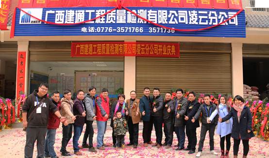 2016年1月27日下午4點18分,在燦爛的陽光下,伴著喜慶的禮炮聲,集團(tuán)副總裁黃承理及廣西建通工程質(zhì)量檢測有限公司總經(jīng)理陸虹任為代表的集團(tuán)高層領(lǐng)導(dǎo)共同為檢測凌云分公司開業(yè)揭牌并宣布廣西建通工程質(zhì)量檢測有限公司凌云分公司正式開業(yè)!到場嘉賓紛紛為凌云分公司的開業(yè)致以了真誠的祝福。