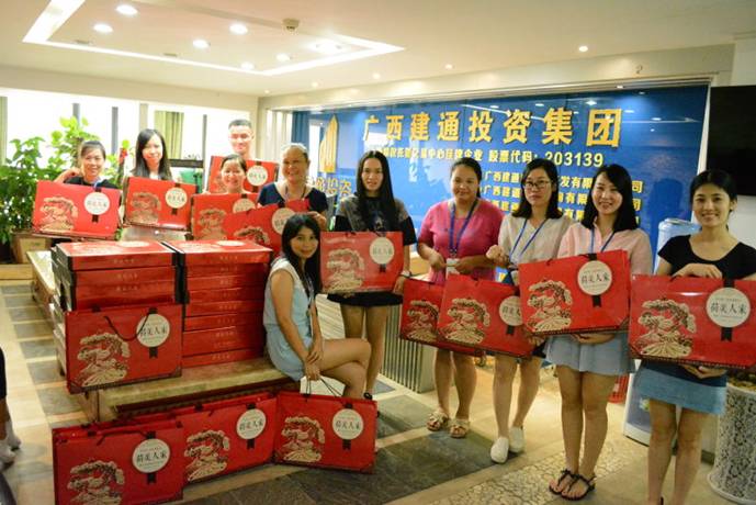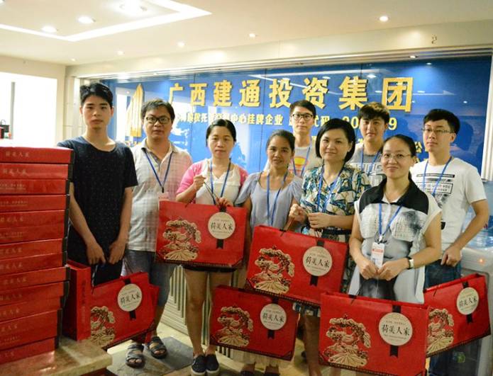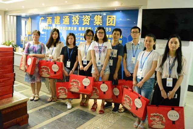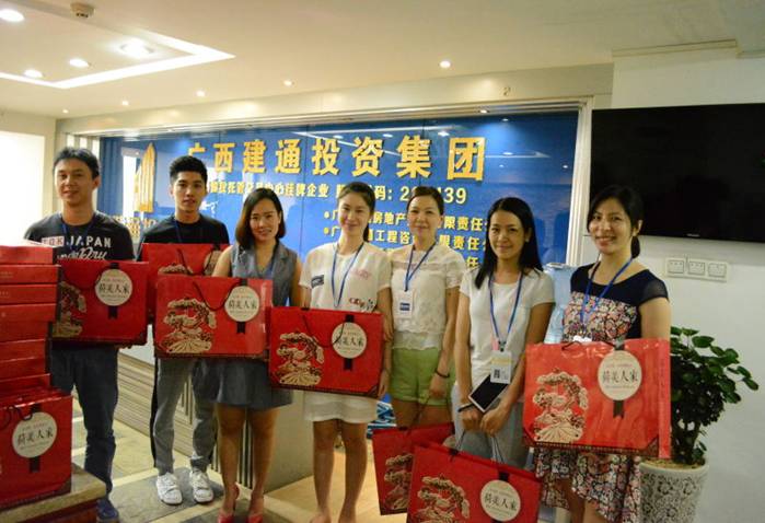 中秋節(jié)前在集團(tuán)董事會(huì)秘書處工作人員的引導(dǎo)下,集團(tuán)百色總部全體員工喜笑顏開的匯集在建通創(chuàng)業(yè)大廈和建通時(shí)代廣場中心,領(lǐng)取集團(tuán)精心準(zhǔn)備好的中秋佳節(jié)禮品。205份中秋月餅在大廳堆積成一座座的山峰,百忙之中趕來的同事在井然有序的領(lǐng)取自己的月餅后,展示出最甜美的笑容和其他同事拍照留影紀(jì)念。這不僅僅是一份中秋禮物,更代表著集團(tuán)對每一位員工表示深切問候和誠摯的感謝,感謝全體員工一年四季堅(jiān)守在自己的工作崗位上,辛勤的為集團(tuán)的發(fā)展壯大而努力。