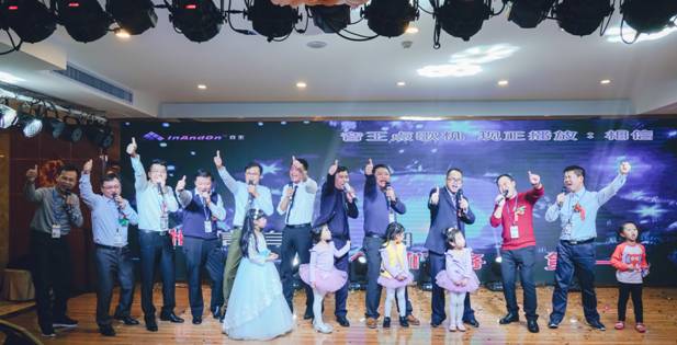 一朵紅花不是春,萬紫千紅春滿園。集團(tuán)領(lǐng)導(dǎo)與員工親情互動(dòng),特別是激動(dòng)人心的抽獎(jiǎng)活動(dòng),隨著主持人對(duì)三、二、一、特等獎(jiǎng)逐步解開,晚會(huì)現(xiàn)場成了一個(gè)歡樂的海洋,歌聲、掌聲、歡呼聲經(jīng)久不息!奇幻的魔術(shù)表演,讓在場人員目睹了一場視聽盛宴,敏捷的身手,滑稽的表演,令人躍躍欲試,嘆為觀止!最令人鼓舞、催人奮進(jìn)的是集團(tuán)董事們集體演唱的《相信自己》,把晚會(huì)推上了高潮,鏗鏘的詞語和著優(yōu)美的旋律,唱出了每一位努力拼搏、感恩社會(huì)的建通人的心聲,表達(dá)了對(duì)集團(tuán)光明前景的強(qiáng)烈自信和美好祝福!