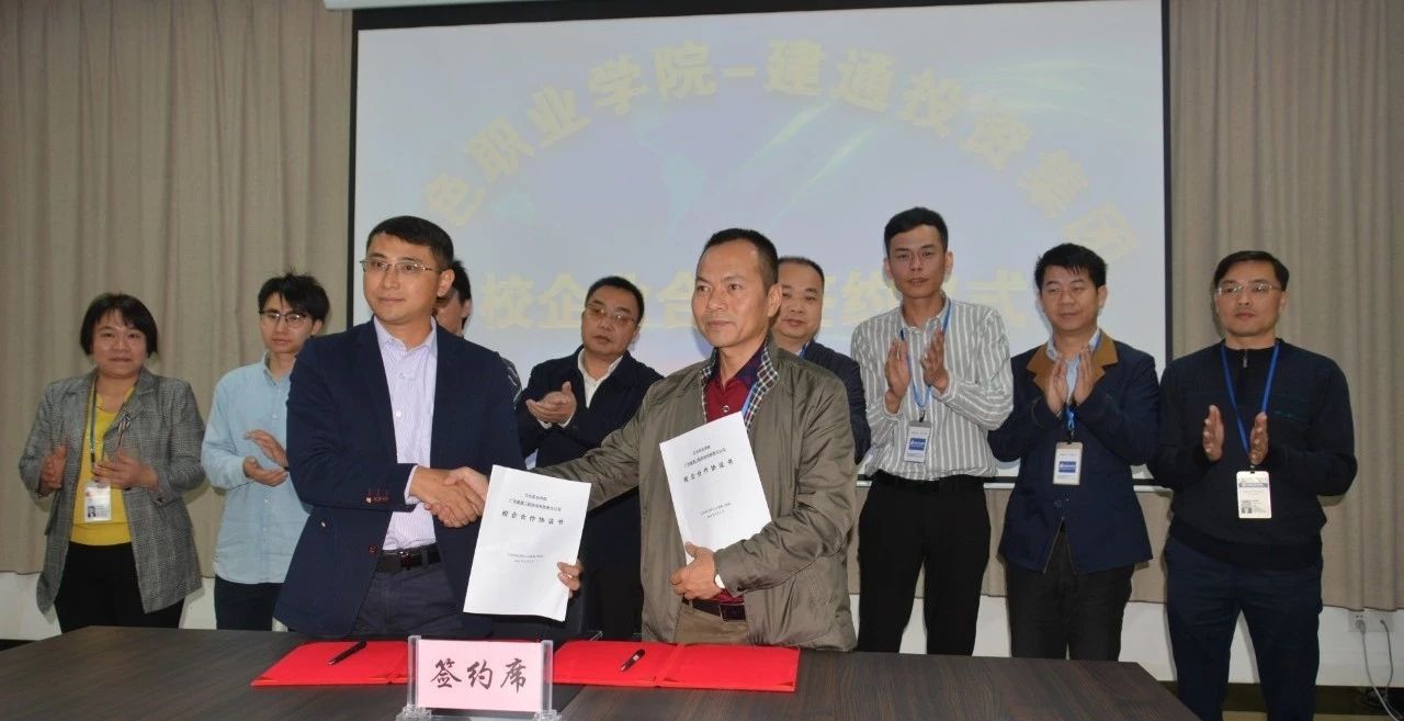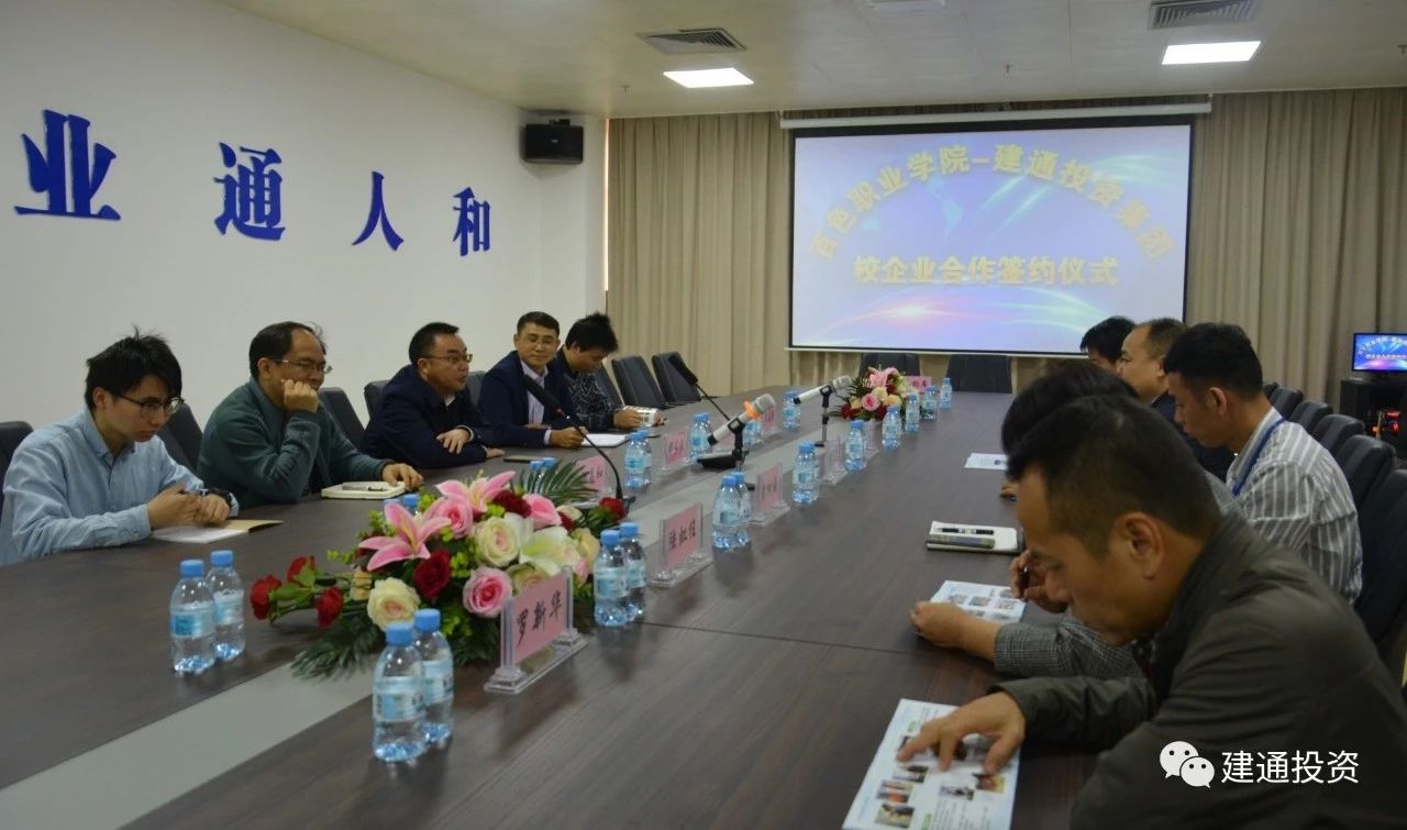 2019年4月2日上午10:30,百色職業(yè)學(xué)院-建通投資集團(tuán)校企業(yè)合作簽約儀式在我集團(tuán)百色總部“建通中心”2號(hào)樓A座2樓會(huì)務(wù)室順利召開(kāi),并成功簽約。出席此次簽約儀式的嘉賓有集團(tuán)副董事長(zhǎng)、總工程師謝乃鵬、集團(tuán)副董事長(zhǎng)黃樹(shù)威等集團(tuán)高層領(lǐng)導(dǎo)與百色職業(yè)學(xué)院黨委委員副院長(zhǎng)那家法、黨委宣傳部部長(zhǎng)楊昌和等5位校領(lǐng)導(dǎo)。校企雙方精誠(chéng)合作,攜手共進(jìn)。