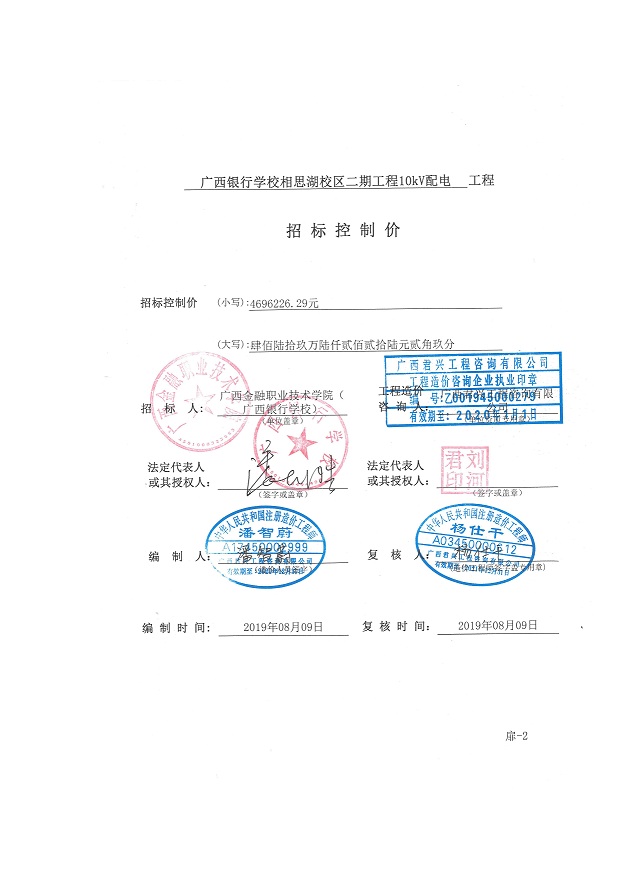 廣西銀行學校相思湖校區(qū)10KV配電工程(二期)[項目編號:項目編號:GXZC2019-G2-26009-GXJT]招標控制價公布如下: