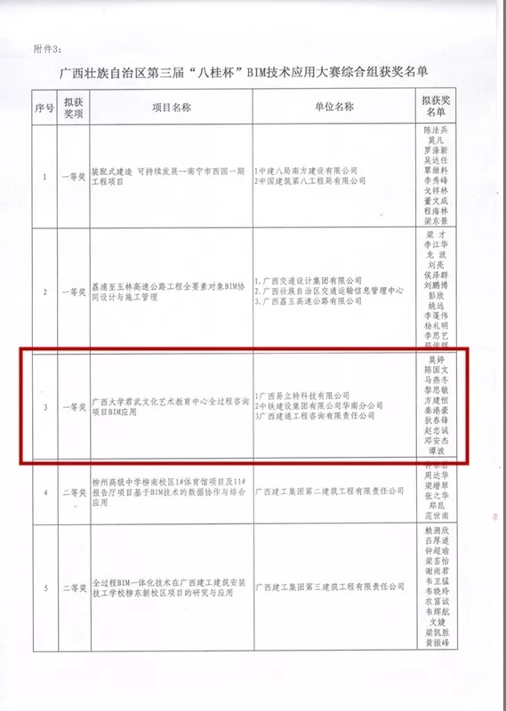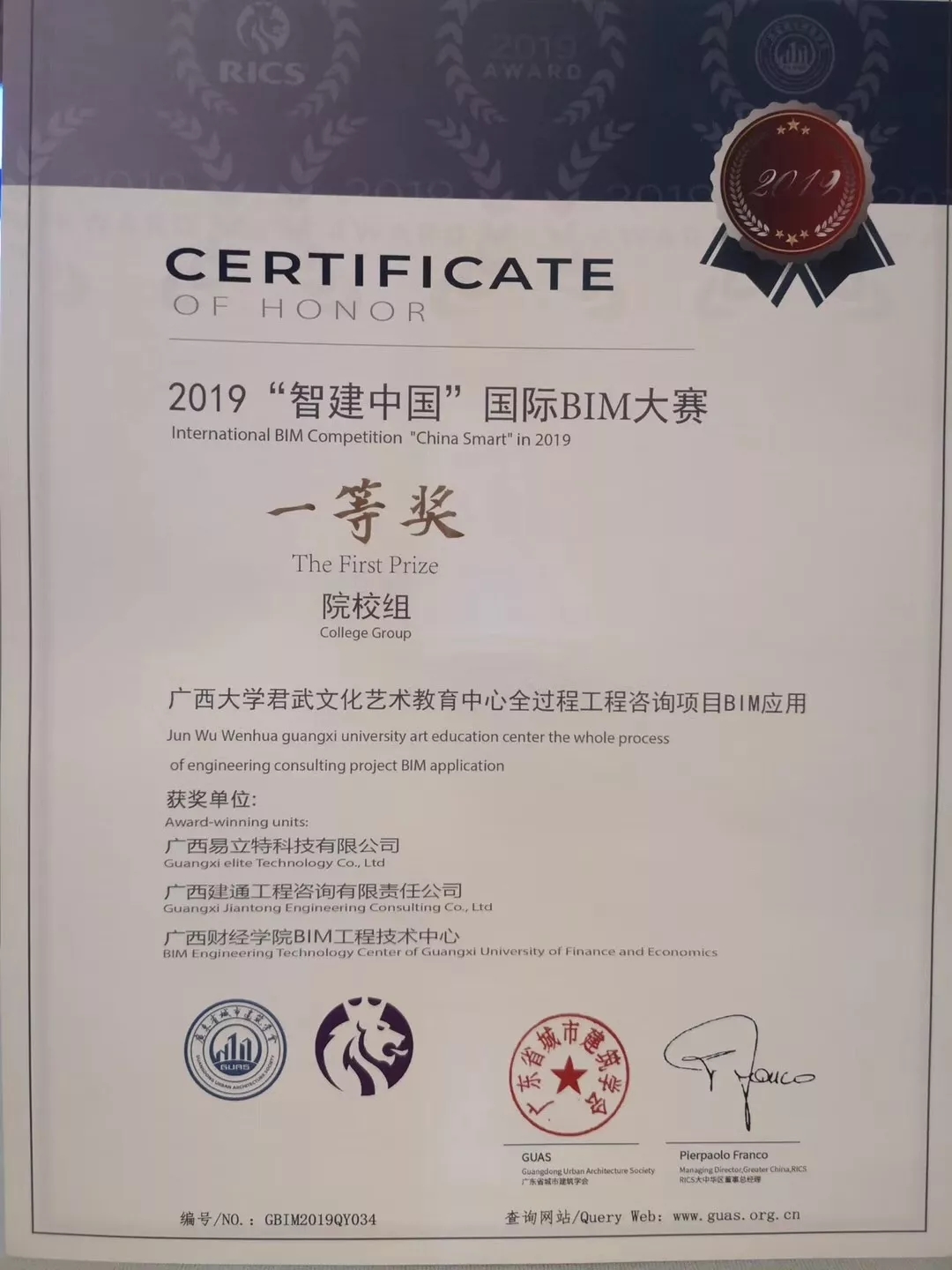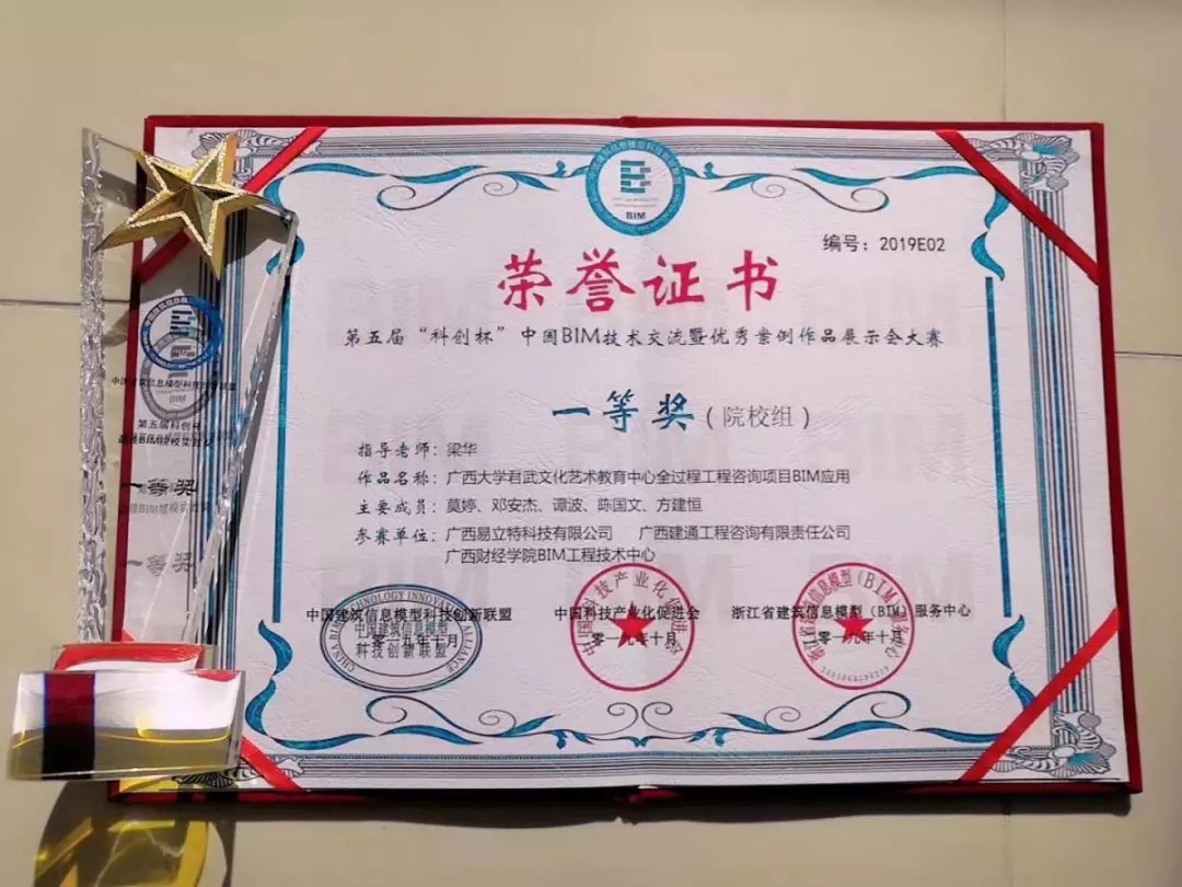 近日,建通投資集團(tuán)旗下子公司廣西建通工程咨詢有限責(zé)任公司聯(lián)合廣西易立特科技有限公司攜手廣西財經(jīng)學(xué)院BIM工程技術(shù)中心,重視校企合作,努力探索實踐,共創(chuàng)的參賽作品——“廣西大學(xué)君武文化藝術(shù)教育中心全過程工程咨詢BIM項目”在多項國家級和省級BIM項目資質(zhì)比賽中,經(jīng)過初評、終評及現(xiàn)場答辯等環(huán)節(jié),與全國各地數(shù)百家建筑參賽單位激烈比拼,一路過關(guān)斬將,最終從眾多行業(yè)標(biāo)桿企業(yè)中載譽(yù)而歸,連中三元榮膺最高三項一等獎的佳績,為集團(tuán)爭得了至高榮譽(yù)!爭拼新的輝煌篇章!