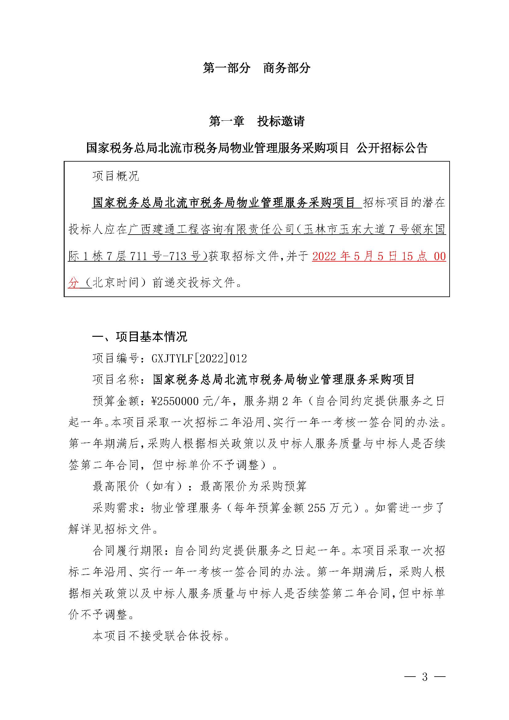 國家稅務(wù)總局北流市稅務(wù)局物業(yè)管理服務(wù)項目公開招標公告