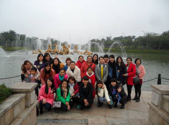 南寧總部的女員工們在嘉和城溫泉谷大門合照留念